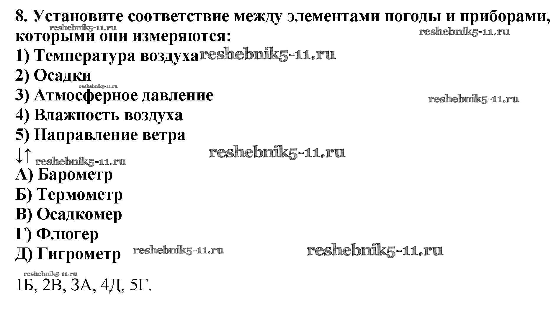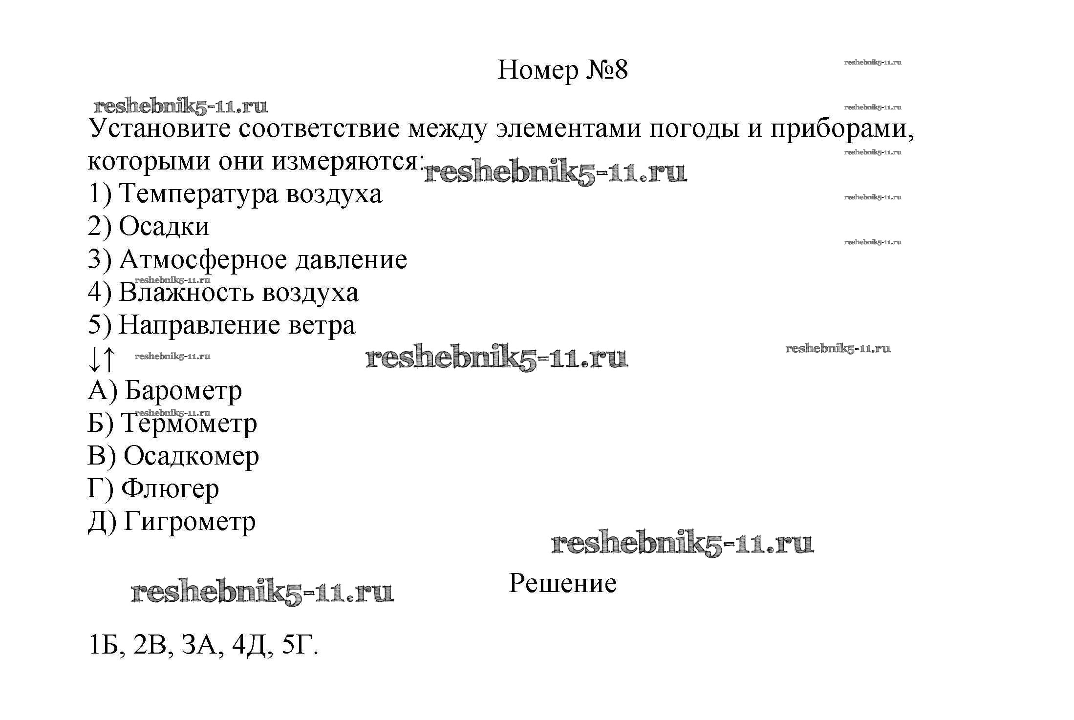 Готовая домашняя работа с ответами по Географии за 5, 6 класс Алексеев, Николина, Липкина Учебник Полярная звезда Просвещение 2018 ФГОС - §45. Погода и климат 8