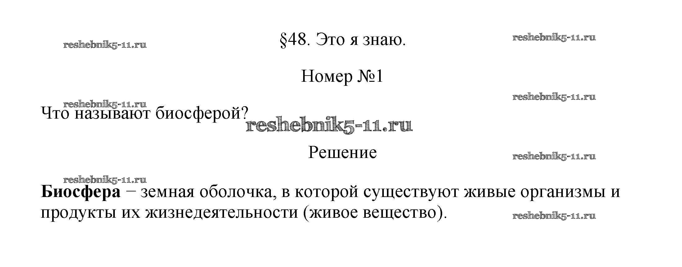 Готовая домашняя работа с ответами по Географии за 5, 6 класс Алексеев, Николина, Липкина Учебник Полярная звезда Просвещение 2018 ФГОС - §48. Биосфера - земная оболочка 1