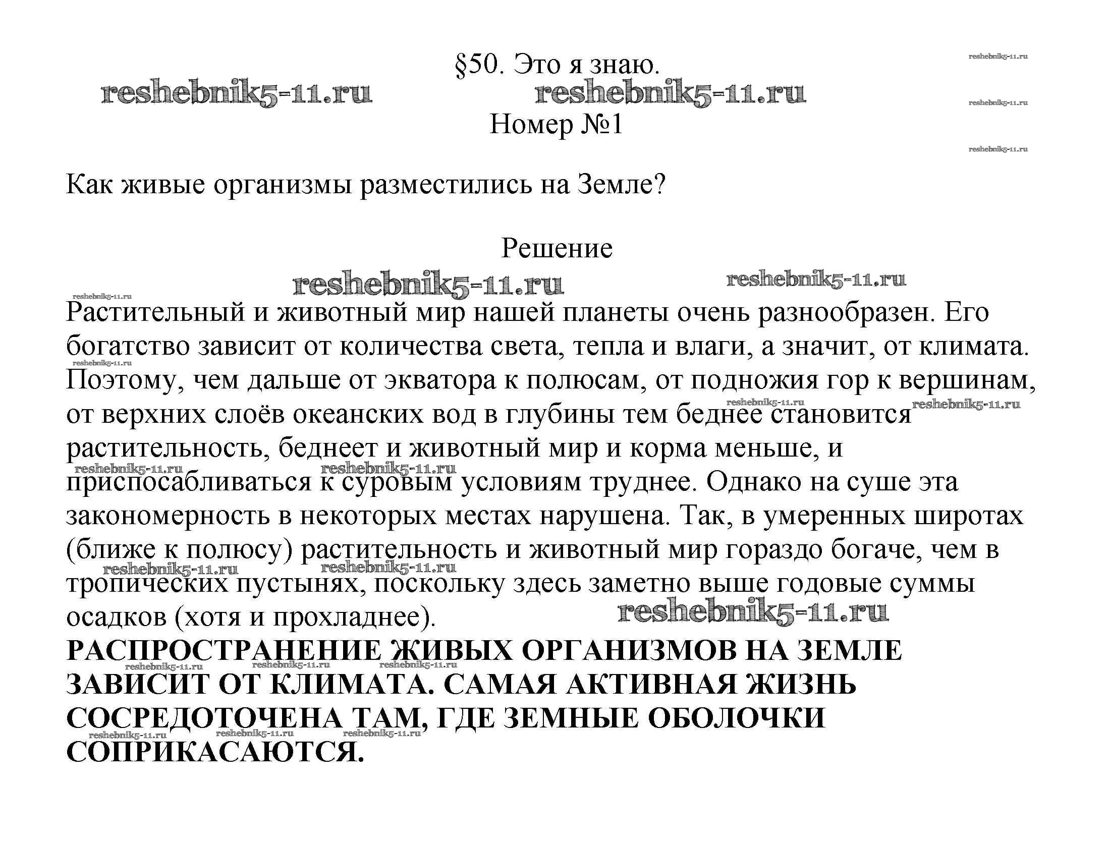 Готовая домашняя работа с ответами по Географии за 5, 6 класс Алексеев, Николина, Липкина Учебник Полярная звезда Просвещение 2018 ФГОС - §50. Биосфера - сфера жизни 1