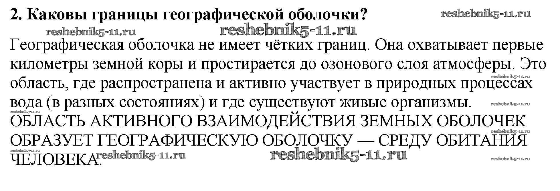 Готовая домашняя работа с ответами по Географии за 5, 6 класс Алексеев, Николина, Липкина Учебник Полярная звезда Просвещение 2018 ФГОС - §51. Географическая оболочка Земли 2