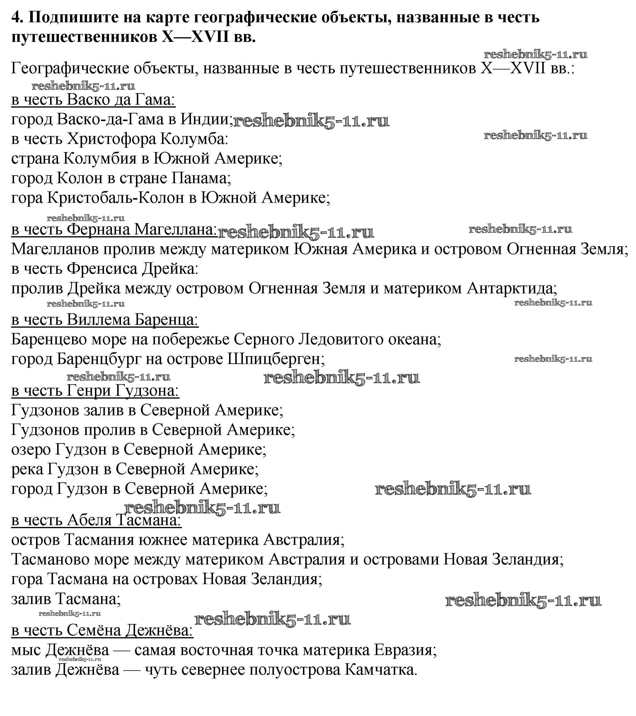 Готовая домашняя работа с ответами по Географии за 5 класс Петрова, Кучеренко Контурные карты Полярная звезда Просвещение 2021 - Задания 4