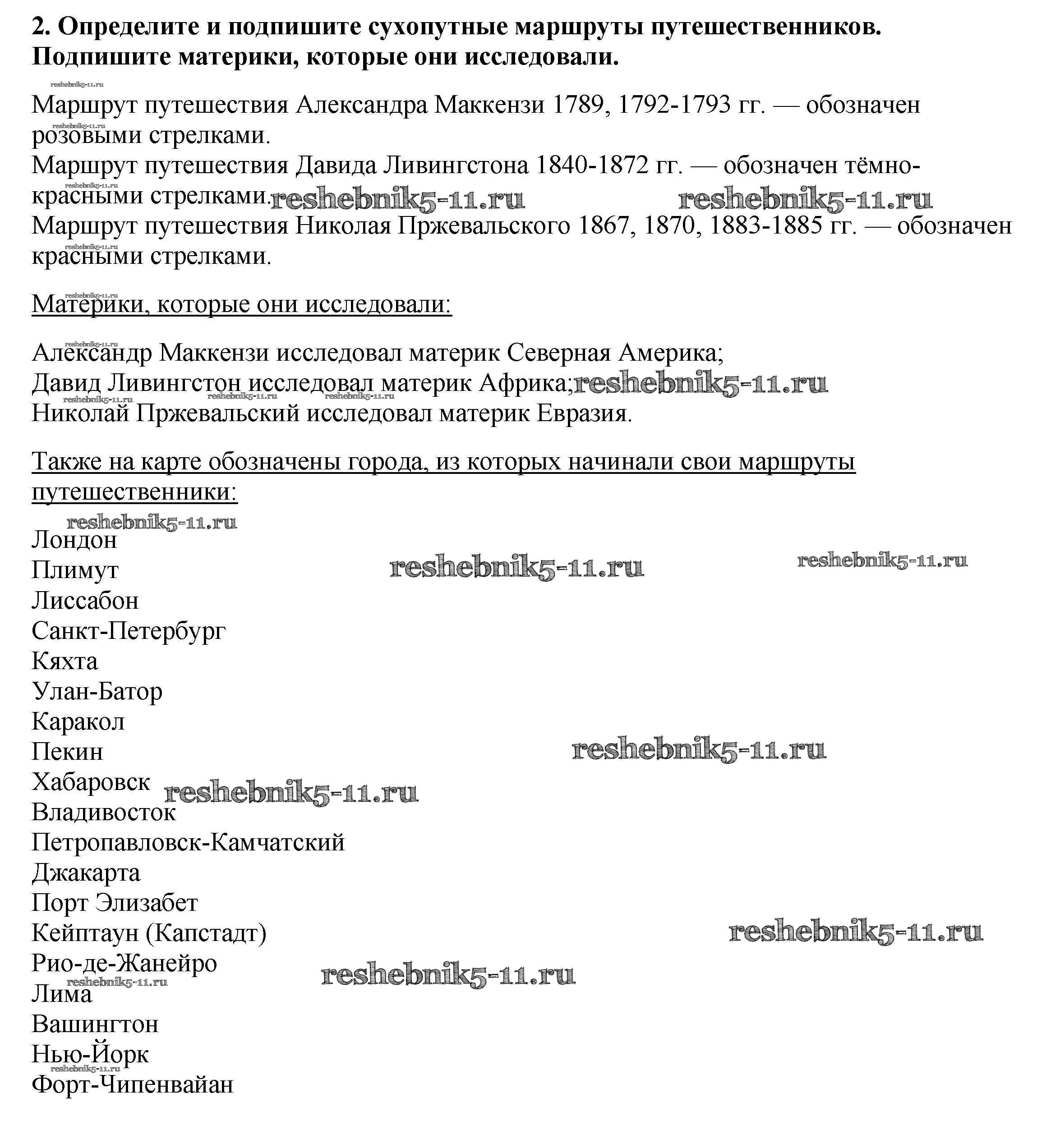 Готовая домашняя работа с ответами по Географии за 5 класс Петрова, Кучеренко Контурные карты Полярная звезда Просвещение 2021 - Задания 2