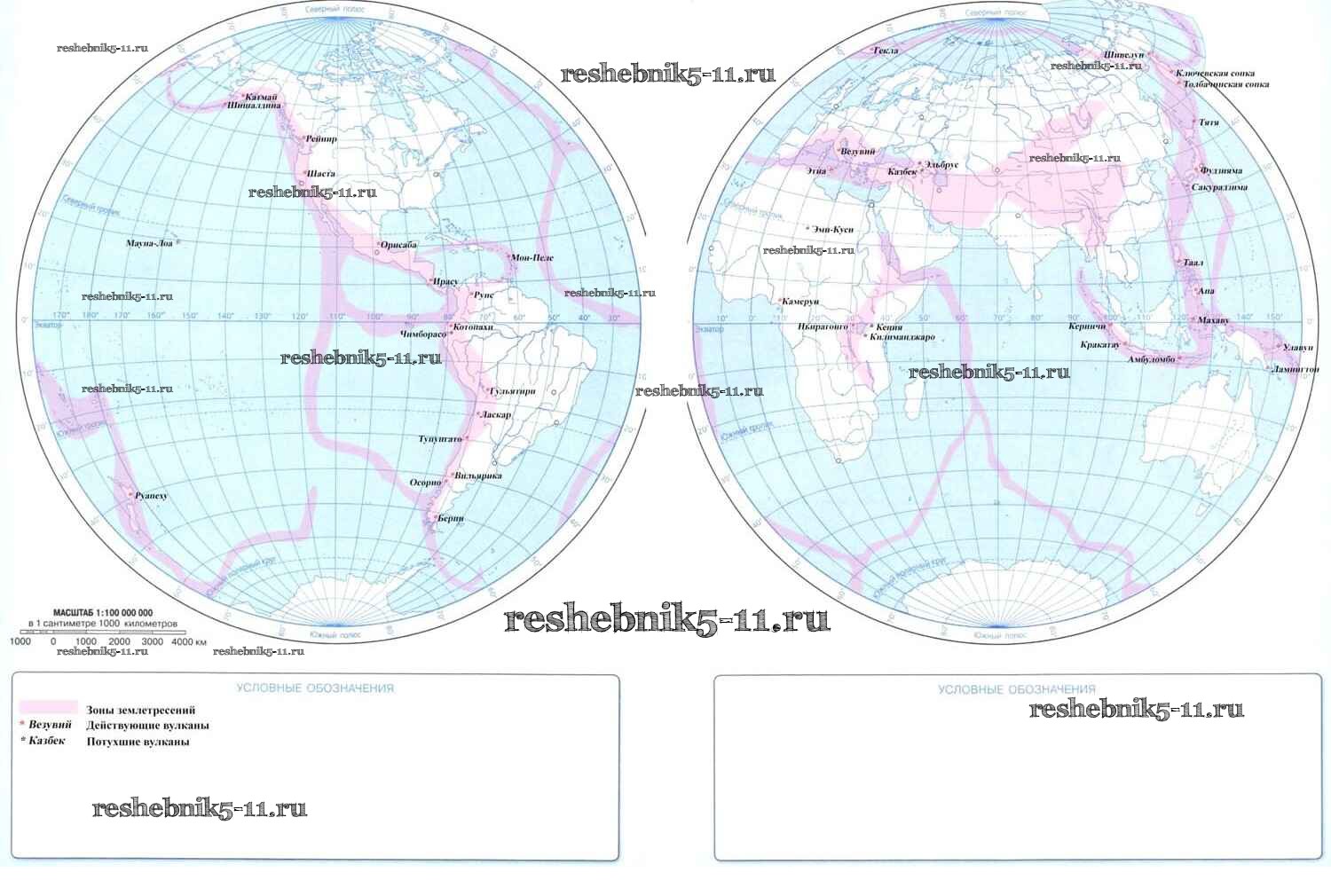 География за 5 класс Петрова Контурные карты Полярная звезда Просвещение страницы 8-9 Карта полушарий. Физическая карта