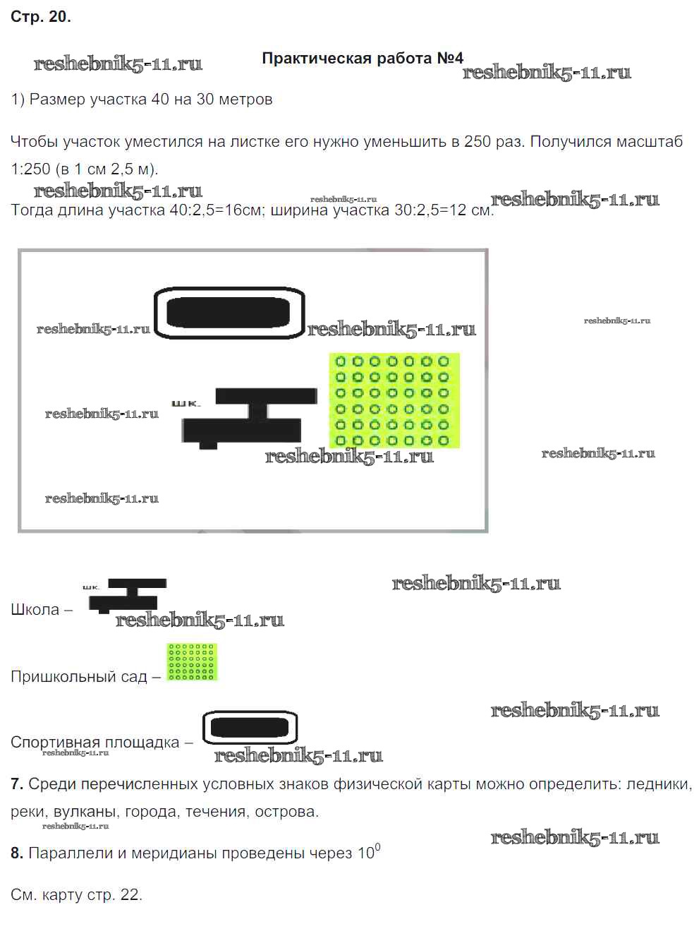 Готовая домашняя работа с ответами по Географии за 5 класс Баринова, Суслов, Карташева Рабочая тетрадь УМК Экзамен 2015 ФГОС - Страницы 20