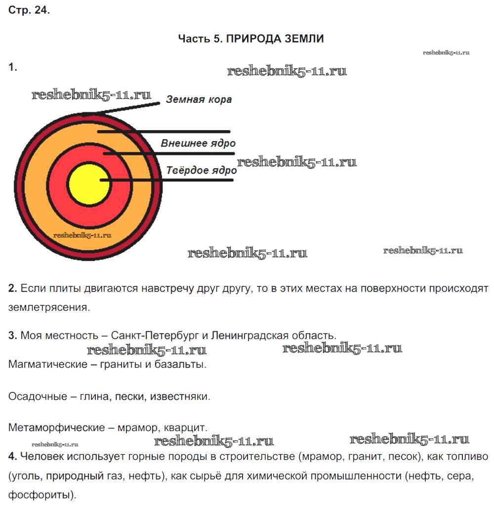 Готовая домашняя работа с ответами по Географии за 5 класс Баринова, Суслов, Карташева Рабочая тетрадь УМК Экзамен 2015 ФГОС - Страницы 24