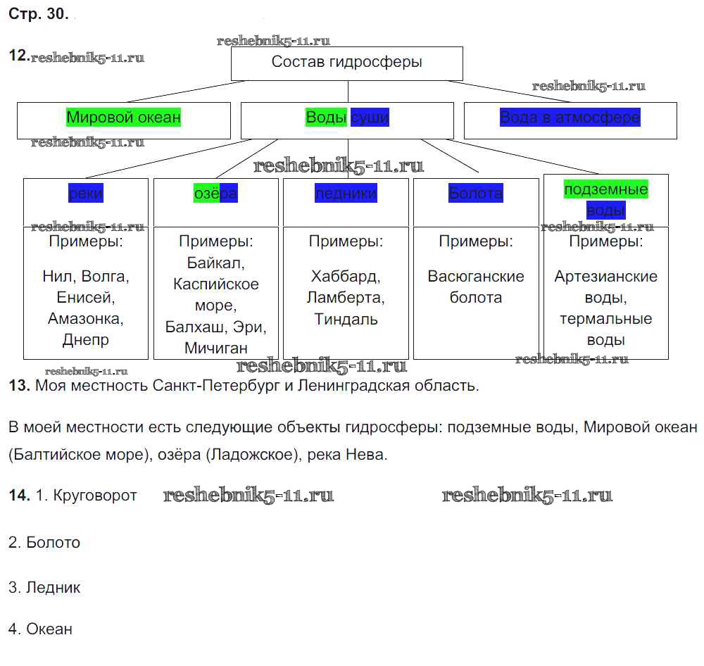Готовая домашняя работа с ответами по Географии за 5 класс Баринова, Суслов, Карташева Рабочая тетрадь УМК Экзамен 2015 ФГОС - Страницы 30