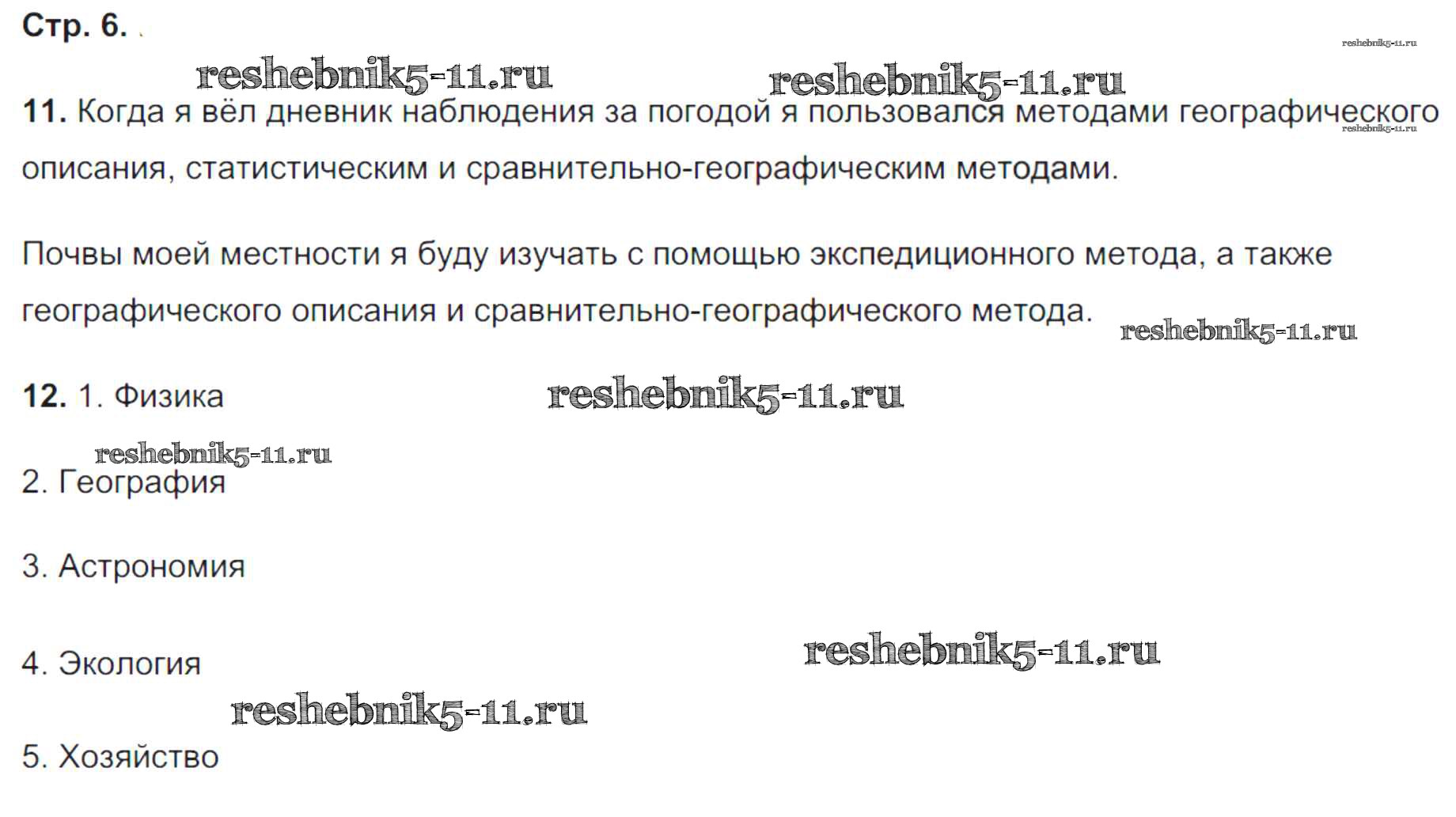Готовая домашняя работа с ответами по Географии за 5 класс Баринова, Суслов, Карташева Рабочая тетрадь УМК Экзамен 2015 ФГОС - Страницы 6