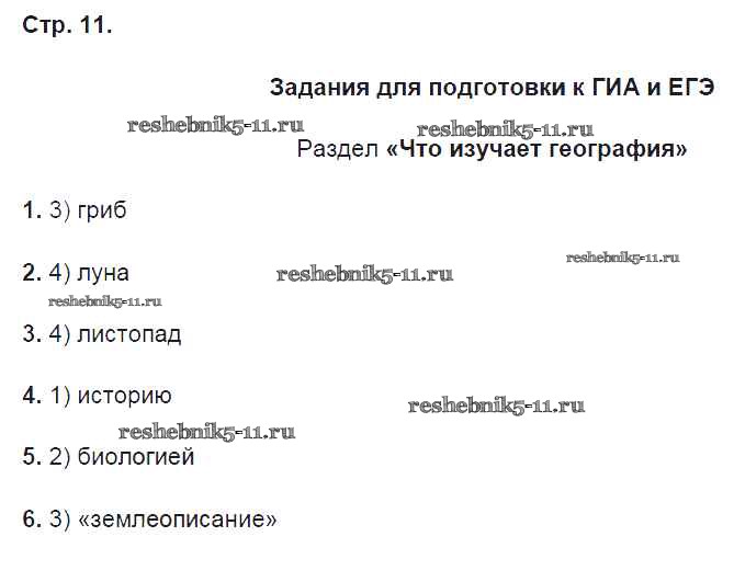Готовая домашняя работа с ответами по Географии за 5 класс Сонин, Курчина Рабочая тетрадь УМК Дрофа 2015 ФГОС - Страницы 11