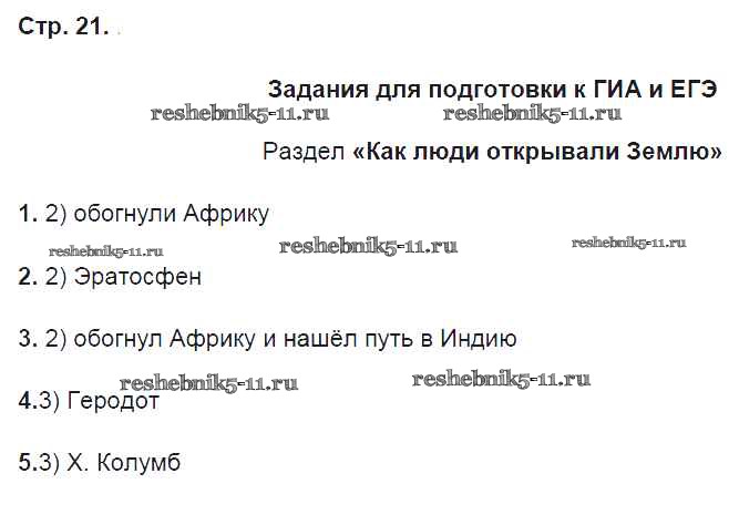 Готовая домашняя работа с ответами по Географии за 5 класс Сонин, Курчина Рабочая тетрадь УМК Дрофа 2015 ФГОС - Страницы 21