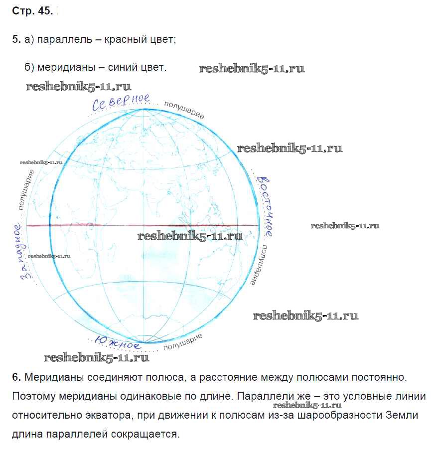 Готовая домашняя работа с ответами по Географии за 5 класс Сонин, Курчина Рабочая тетрадь УМК Дрофа 2015 ФГОС - Страницы 45
