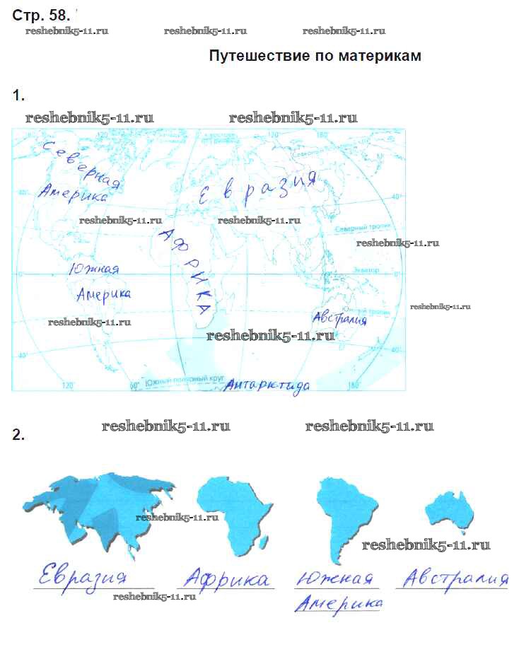 Готовая домашняя работа с ответами по Географии за 5 класс Сонин, Курчина Рабочая тетрадь УМК Дрофа 2015 ФГОС - Страницы 58
