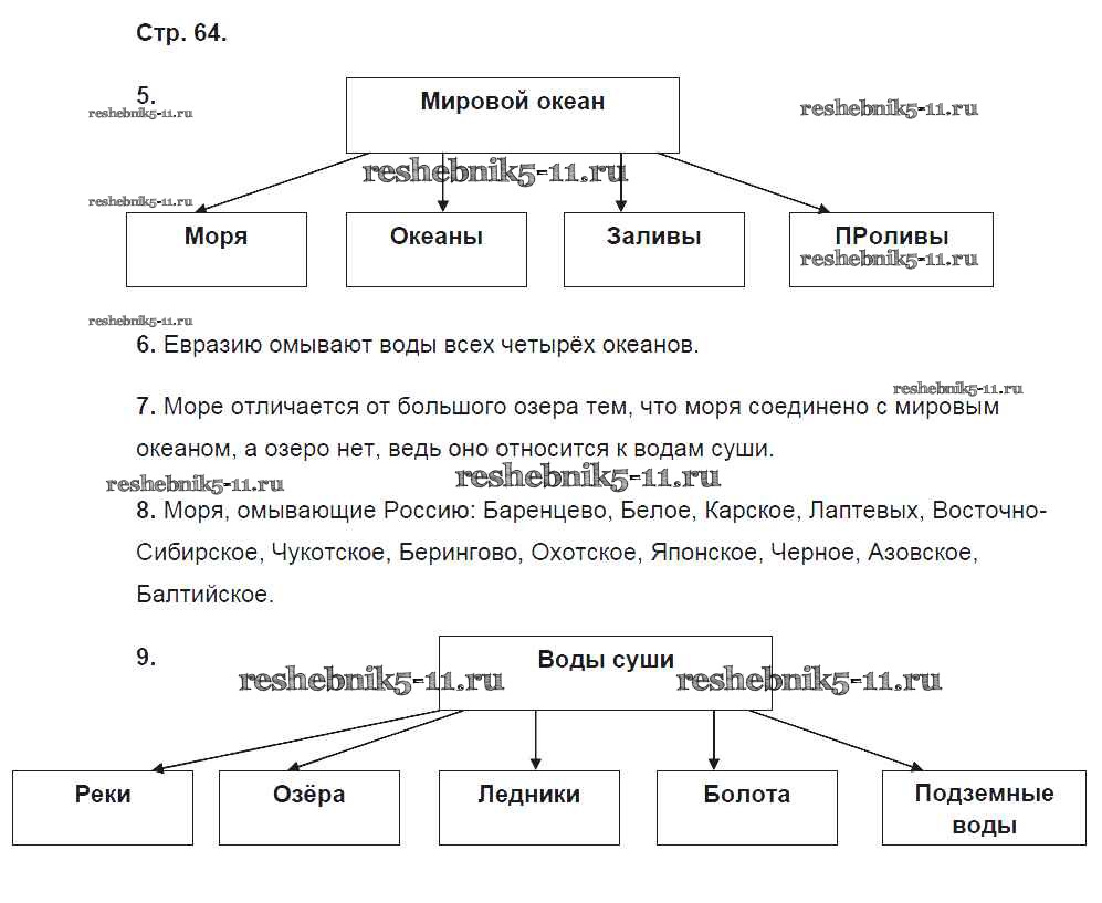 Готовая домашняя работа с ответами по Географии за 5 класс Сонин, Курчина Рабочая тетрадь УМК Дрофа 2015 ФГОС - Страницы 64
