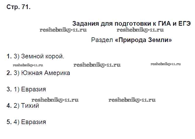 Готовая домашняя работа с ответами по Географии за 5 класс Сонин, Курчина Рабочая тетрадь УМК Дрофа 2015 ФГОС - Страницы 71