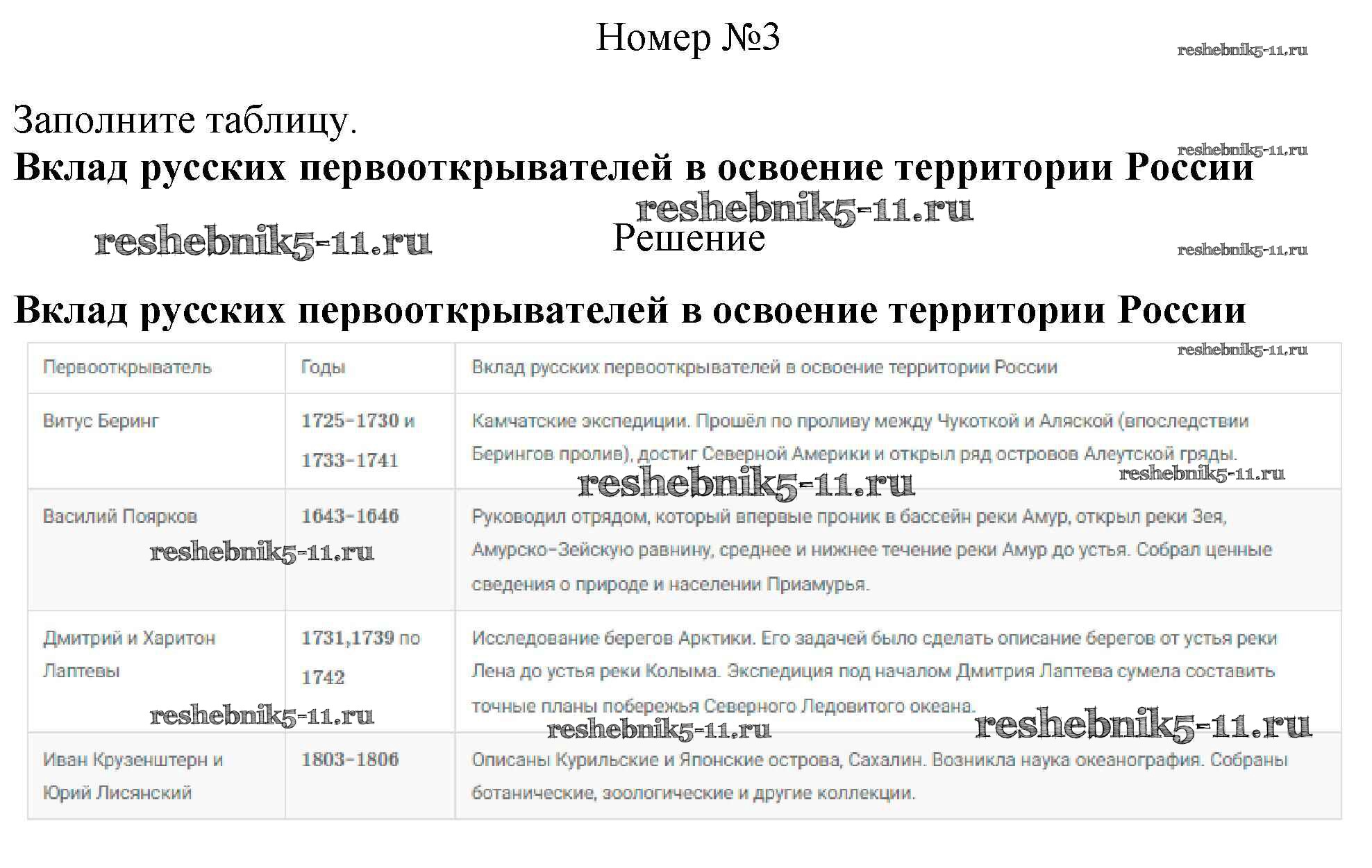 Готовая домашняя работа с ответами по Географии за 5 класс Николина Рабочая тетрадь УМК Экзамен 2022 ФГОС - Тема 4. Российские путешественники 3