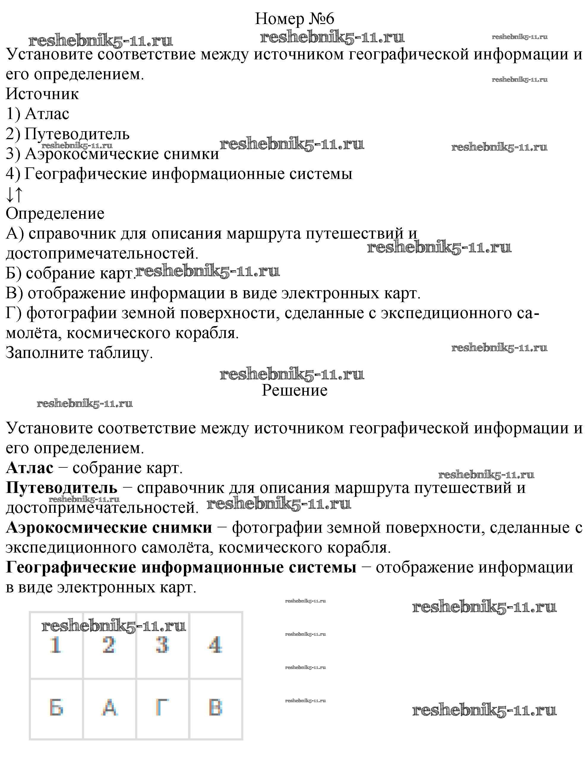 Готовая домашняя работа с ответами по Географии за 5 класс Николина Рабочая тетрадь УМК Экзамен 2022 ФГОС - Тема 5. География сегодня 6