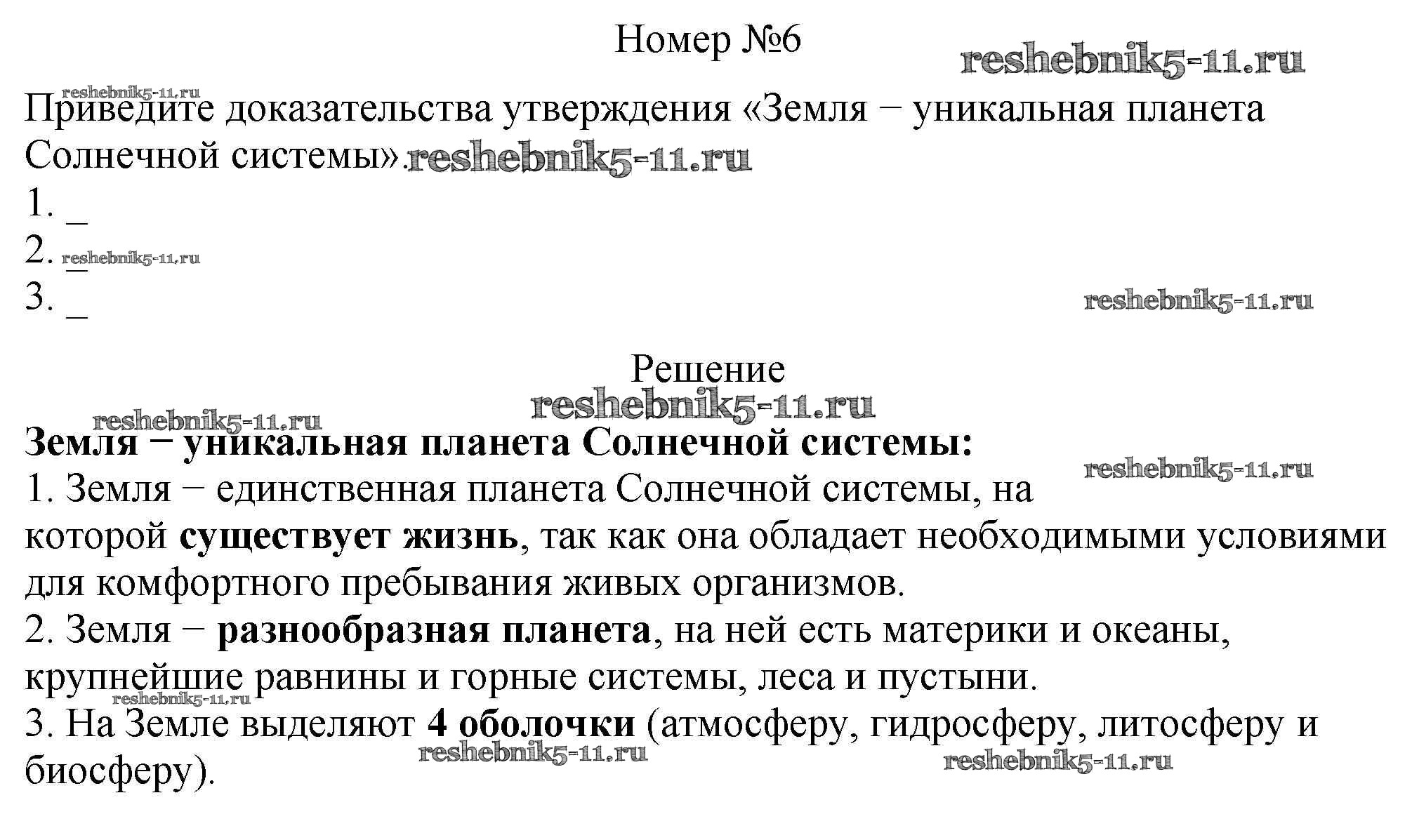 Готовая домашняя работа с ответами по Географии за 5 класс Николина Рабочая тетрадь УМК Экзамен 2022 ФГОС - Тема 6. Мы во Вселенной 6
