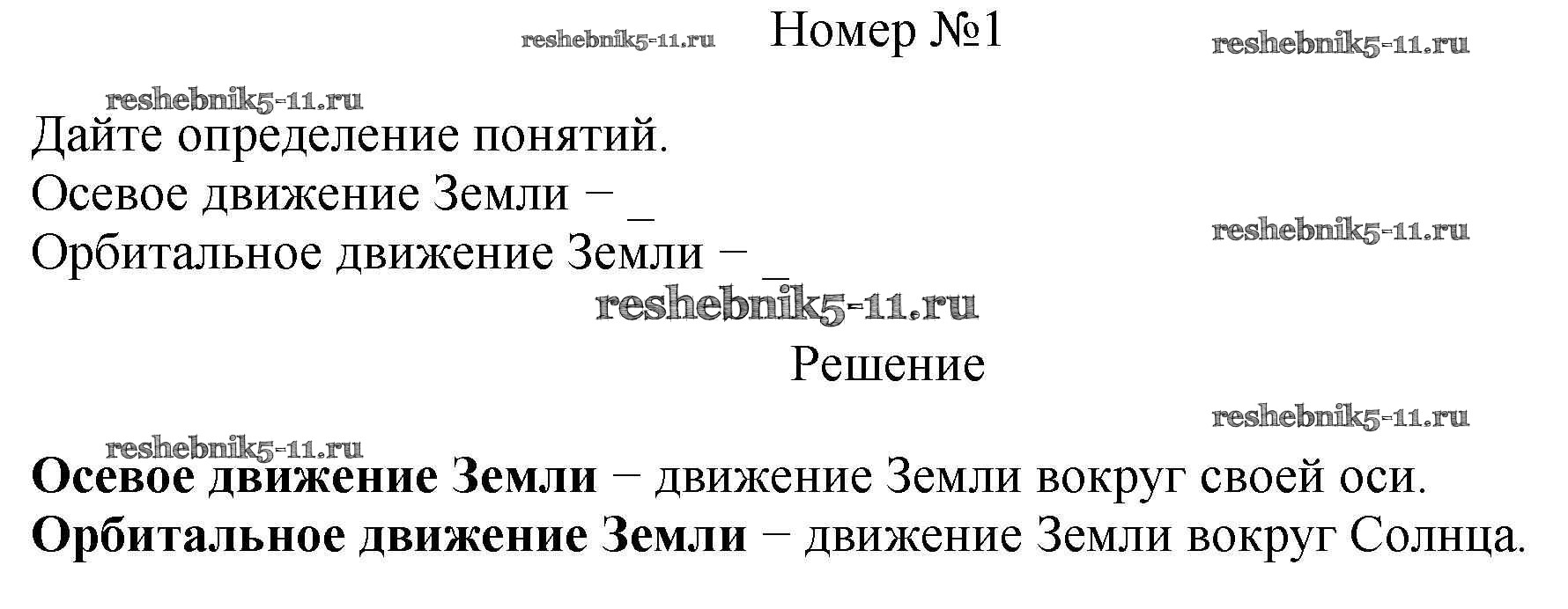 Готовая домашняя работа с ответами по Географии за 5 класс Николина Рабочая тетрадь УМК Экзамен 2022 ФГОС - Тема 7. Движения Земли 1