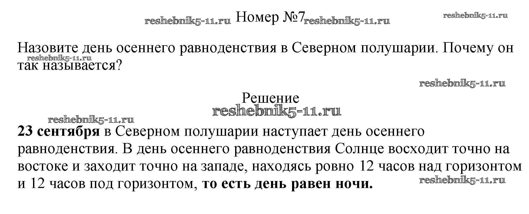 Готовая домашняя работа с ответами по Географии за 5 класс Николина Рабочая тетрадь УМК Экзамен 2022 ФГОС - Тема 8. Солнечный свет на Земле 7