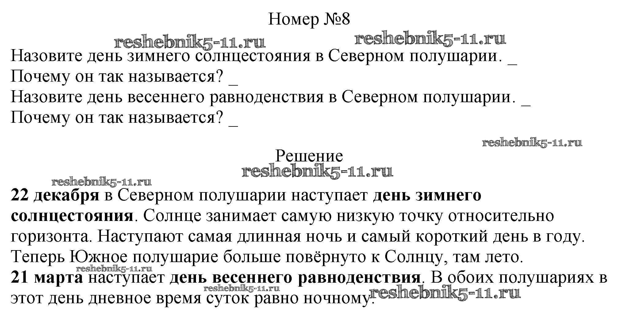 Готовая домашняя работа с ответами по Географии за 5 класс Николина Рабочая тетрадь УМК Экзамен 2022 ФГОС - Тема 8. Солнечный свет на Земле 8