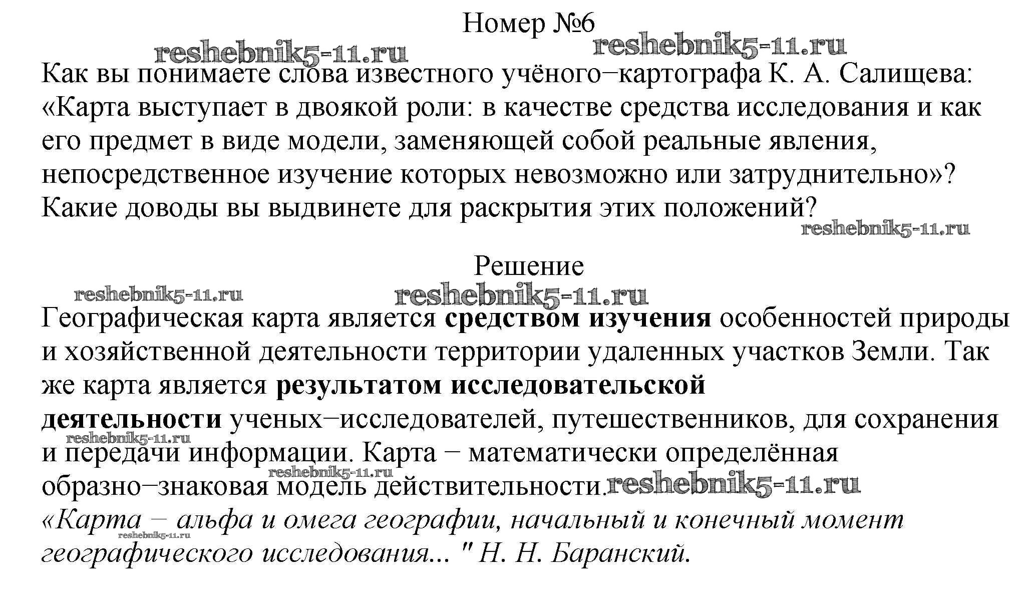 Готовая домашняя работа с ответами по Географии за 5 класс Николина Рабочая тетрадь УМК Экзамен 2022 ФГОС - Тема 13. Географическая карта 6