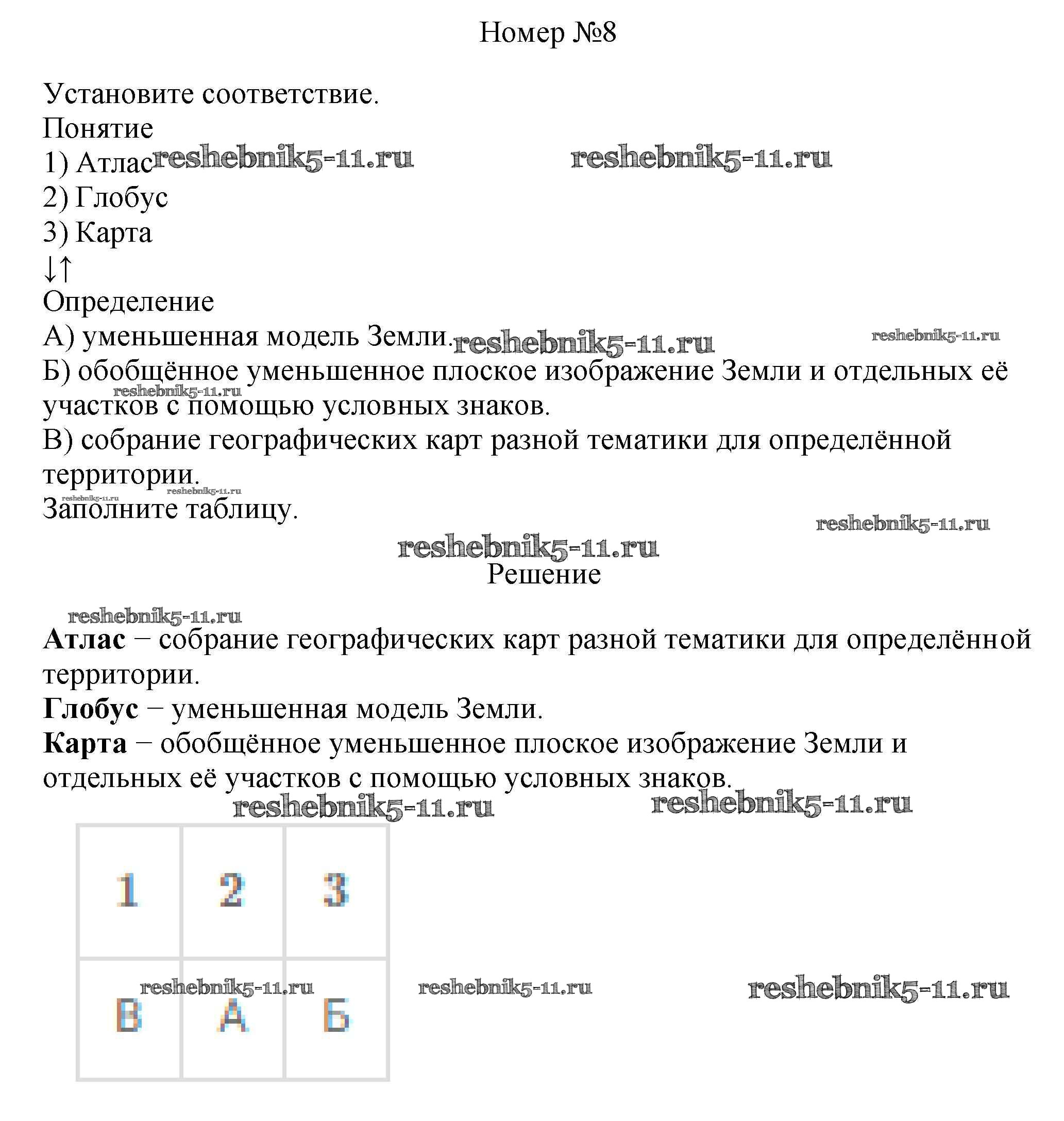 Готовая домашняя работа с ответами по Географии за 5 класс Николина Рабочая тетрадь УМК Экзамен 2022 ФГОС - Тема 13. Географическая карта 8