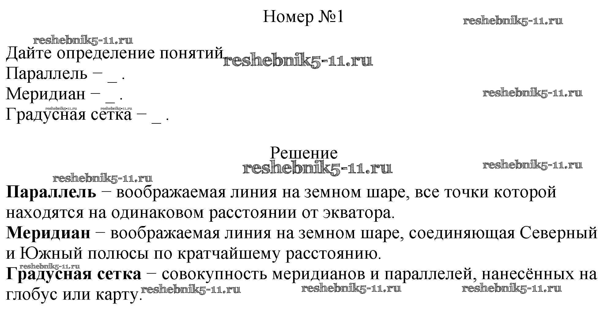 Готовая домашняя работа с ответами по Географии за 5 класс Николина Рабочая тетрадь УМК Экзамен 2022 ФГОС - Тема 14. Градусная сетка 1