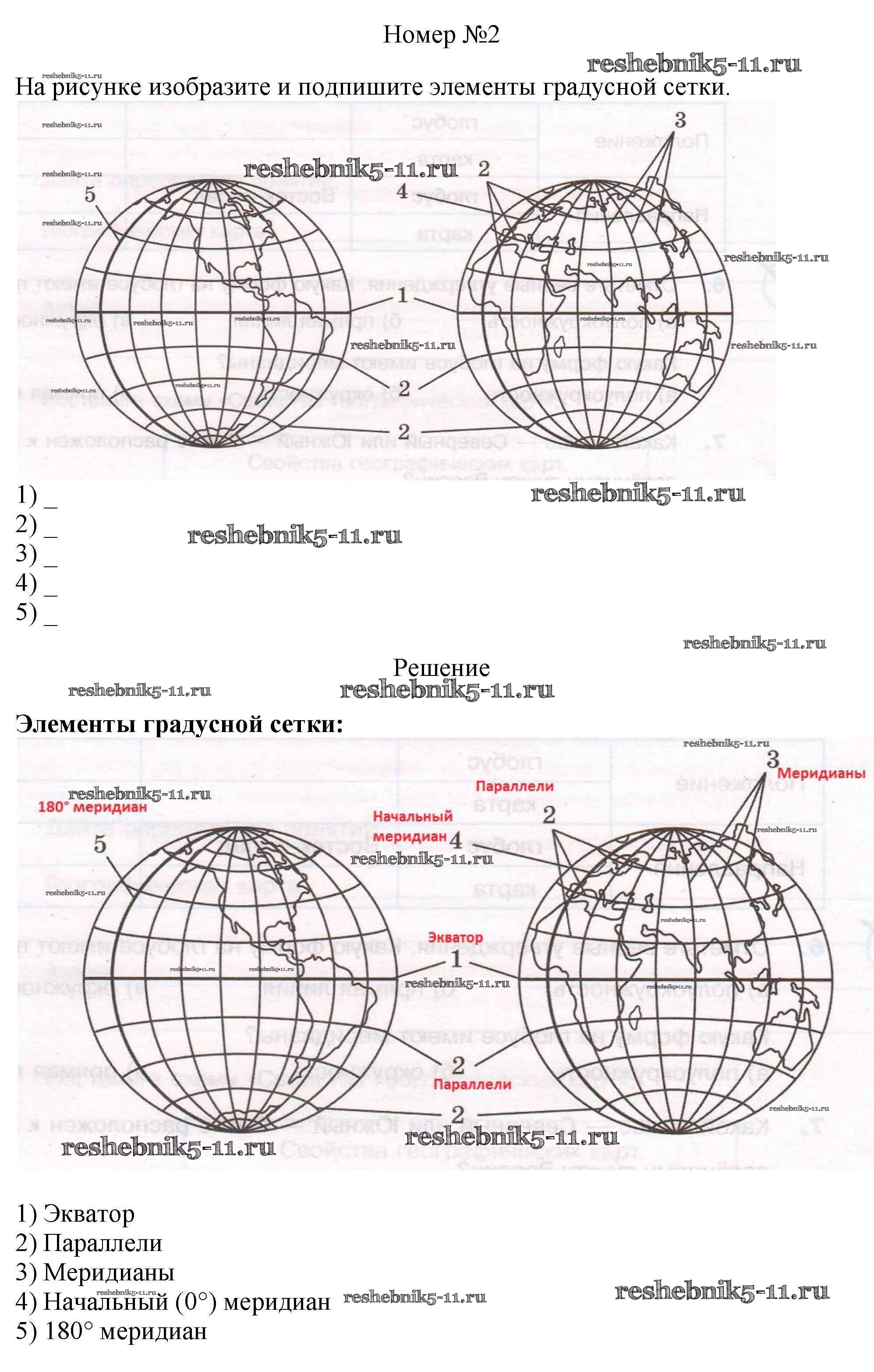 Готовая домашняя работа с ответами по Географии за 5 класс Николина Рабочая тетрадь УМК Экзамен 2022 ФГОС - Тема 14. Градусная сетка 2
