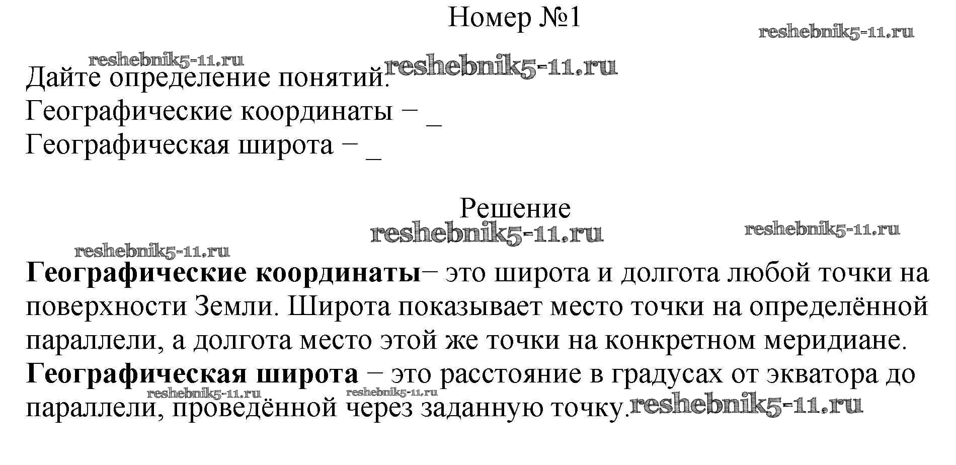 Готовая домашняя работа с ответами по Географии за 5 класс Николина Рабочая тетрадь УМК Экзамен 2022 ФГОС - Тема 15. Географическая сетка (1) 1