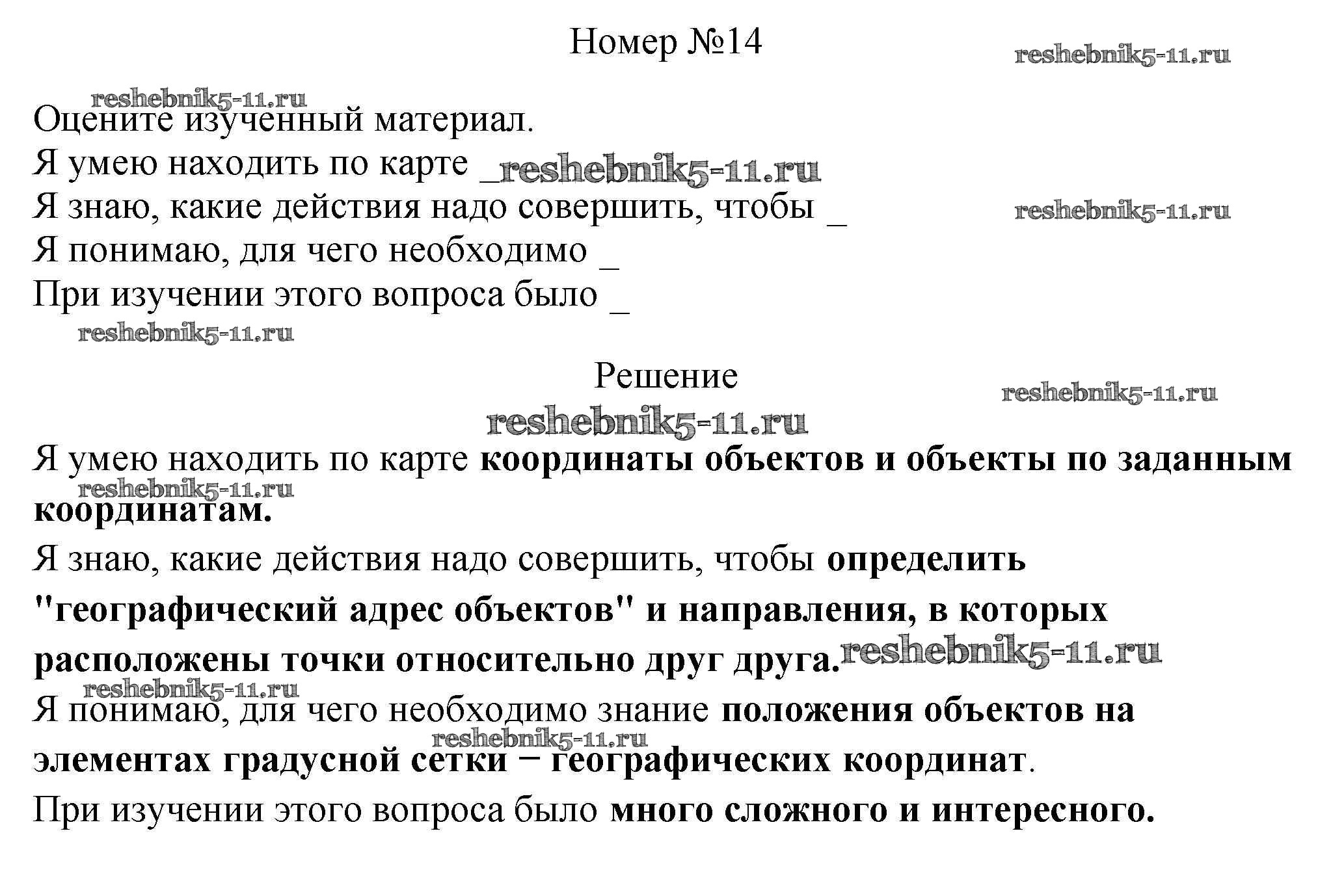 Готовая домашняя работа с ответами по Географии за 5 класс Николина Рабочая тетрадь УМК Экзамен 2022 ФГОС - Тема 16. Географическая сетка (2) 14