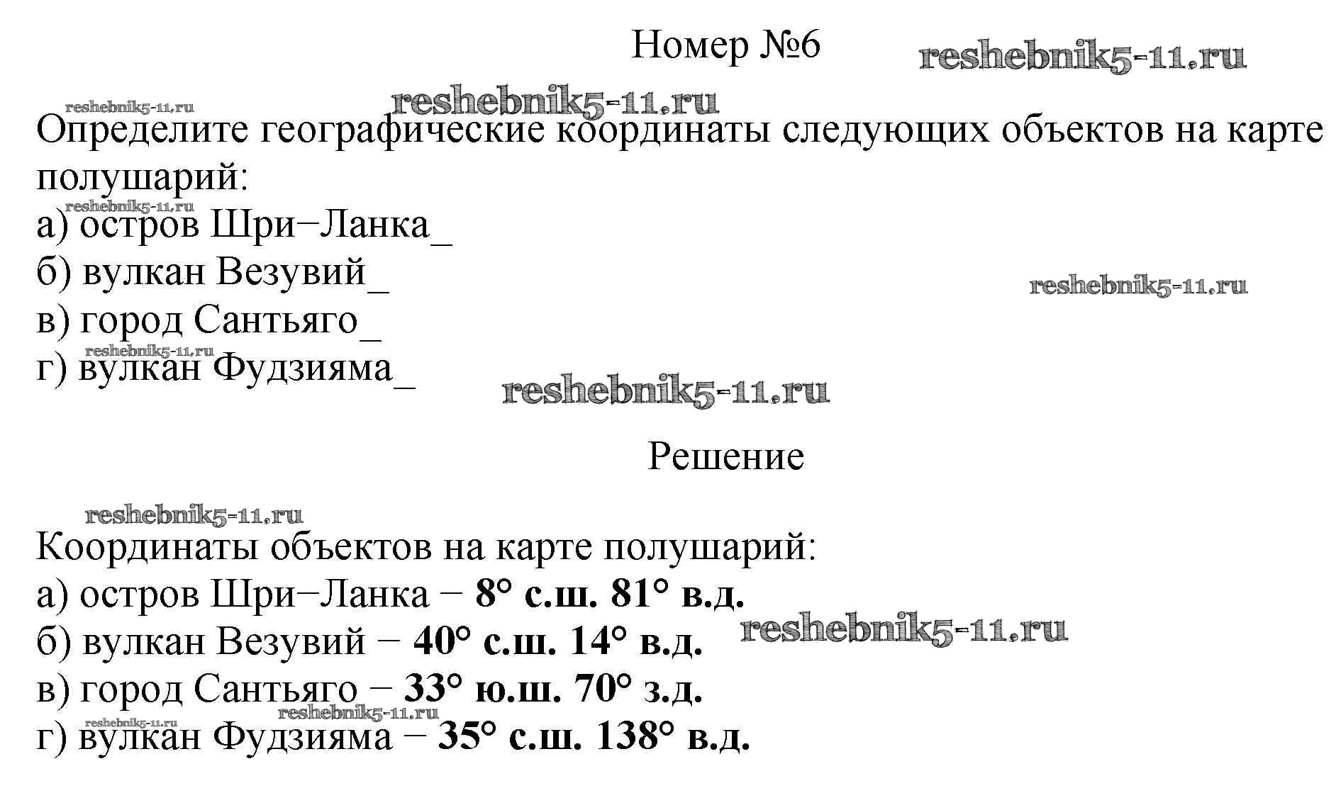 Готовая домашняя работа с ответами по Географии за 5 класс Николина Рабочая тетрадь УМК Экзамен 2022 ФГОС - Тема 16. Географическая сетка (2) 6