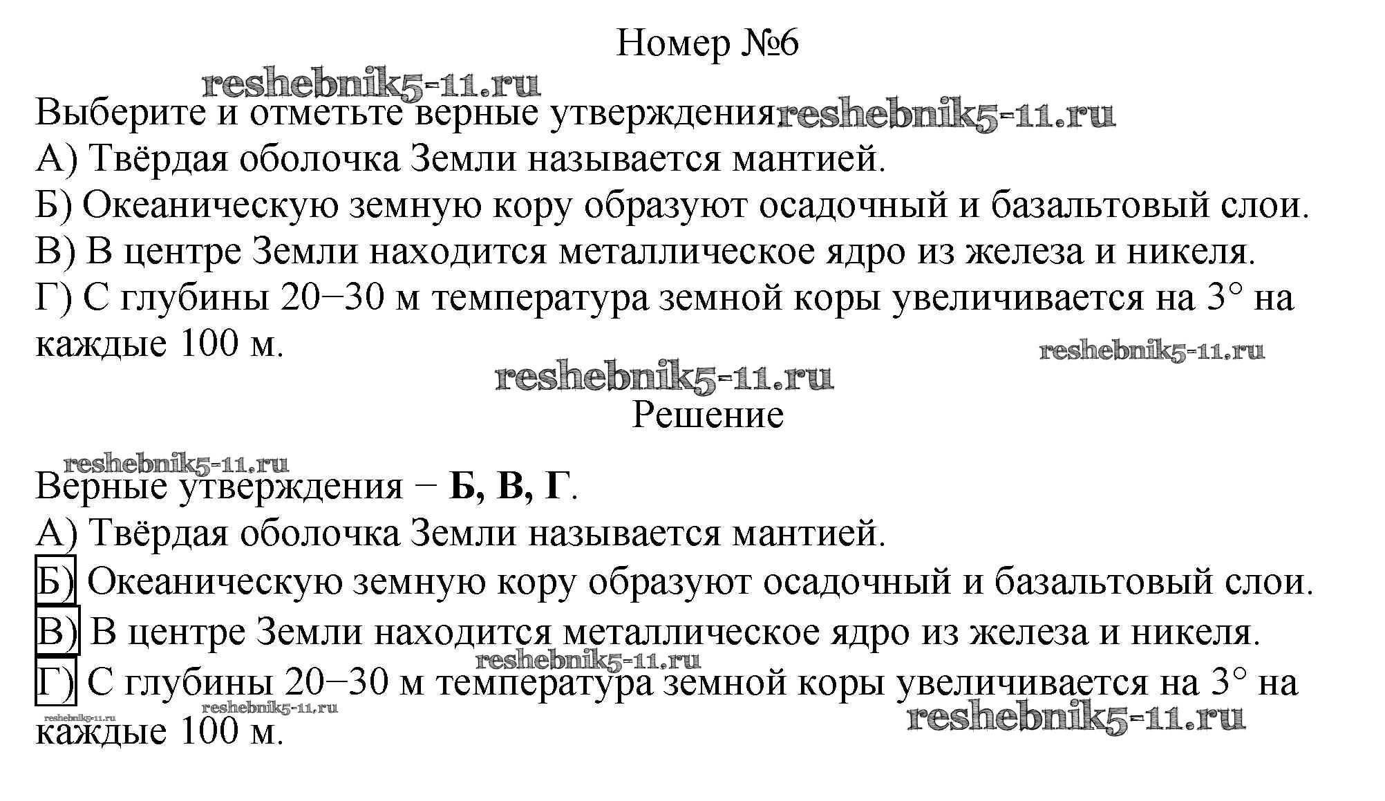 Готовая домашняя работа с ответами по Географии за 5 класс Николина Рабочая тетрадь УМК Экзамен 2022 ФГОС - Тема 18. Земная кора - верхняя часть литосферы 6