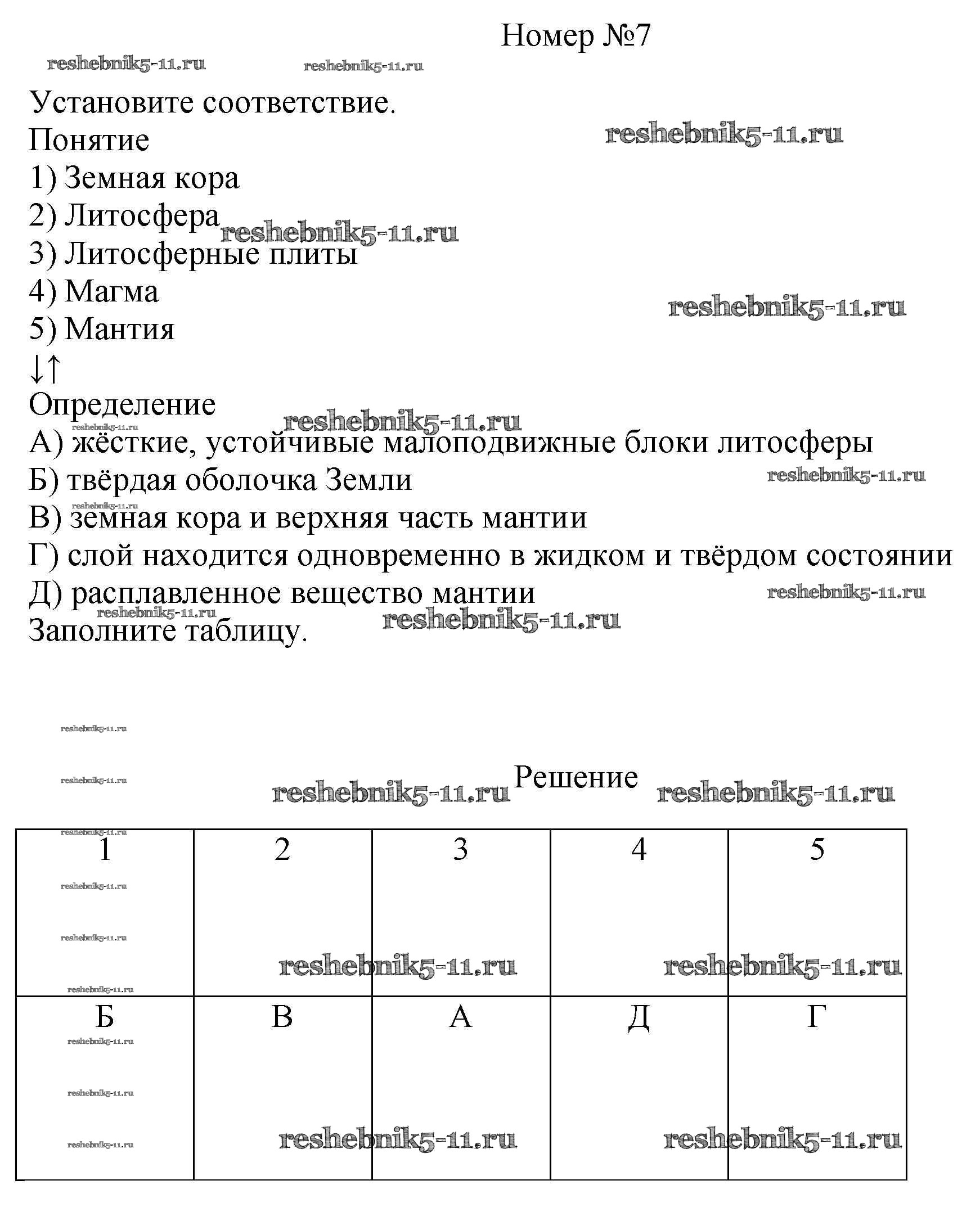 Готовая домашняя работа с ответами по Географии за 5 класс Николина Рабочая тетрадь УМК Экзамен 2022 ФГОС - Тема 18. Земная кора - верхняя часть литосферы 7
