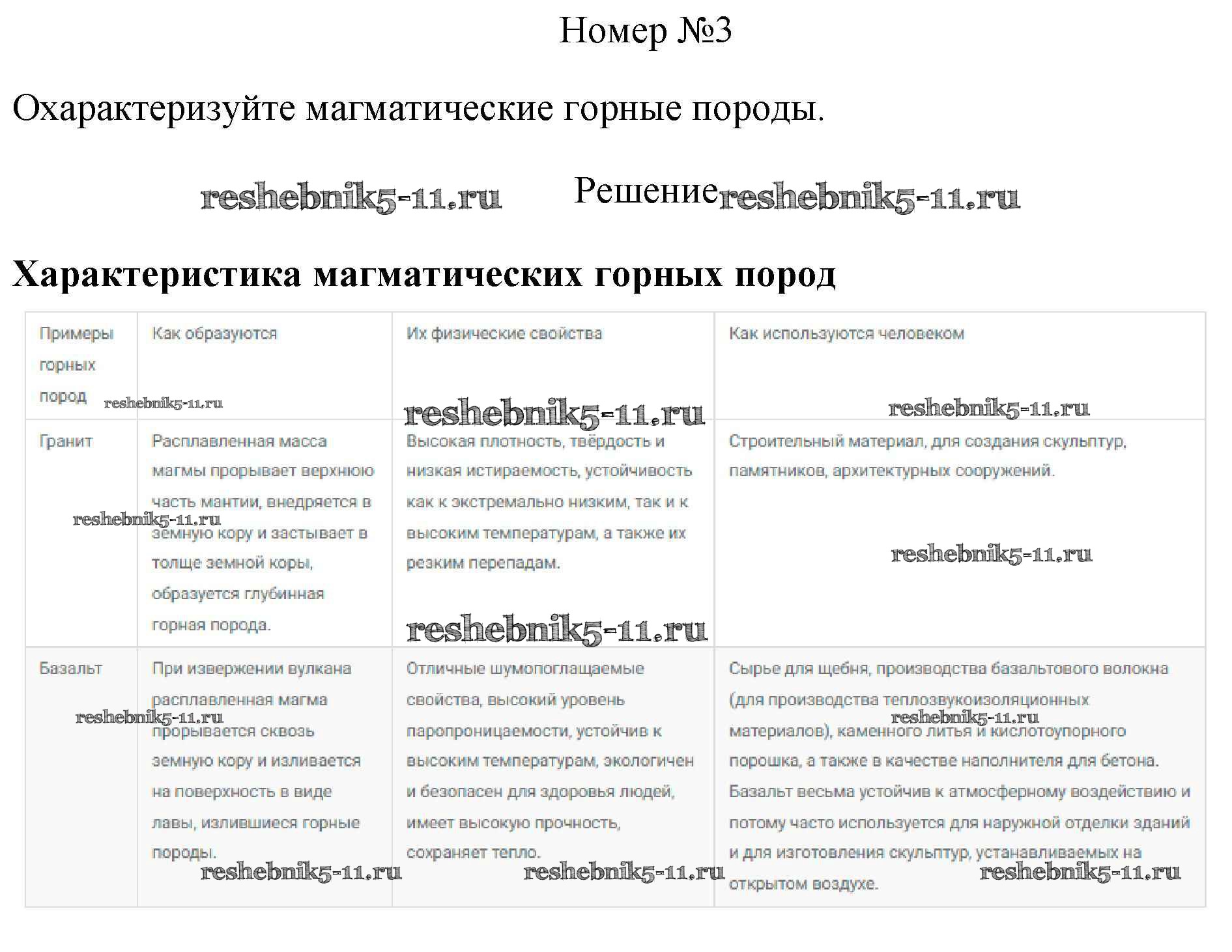Готовая домашняя работа с ответами по Географии за 5 класс Николина Рабочая тетрадь УМК Экзамен 2022 ФГОС - Тема 19. Горные породы, минералы и полезные ископаемые 3