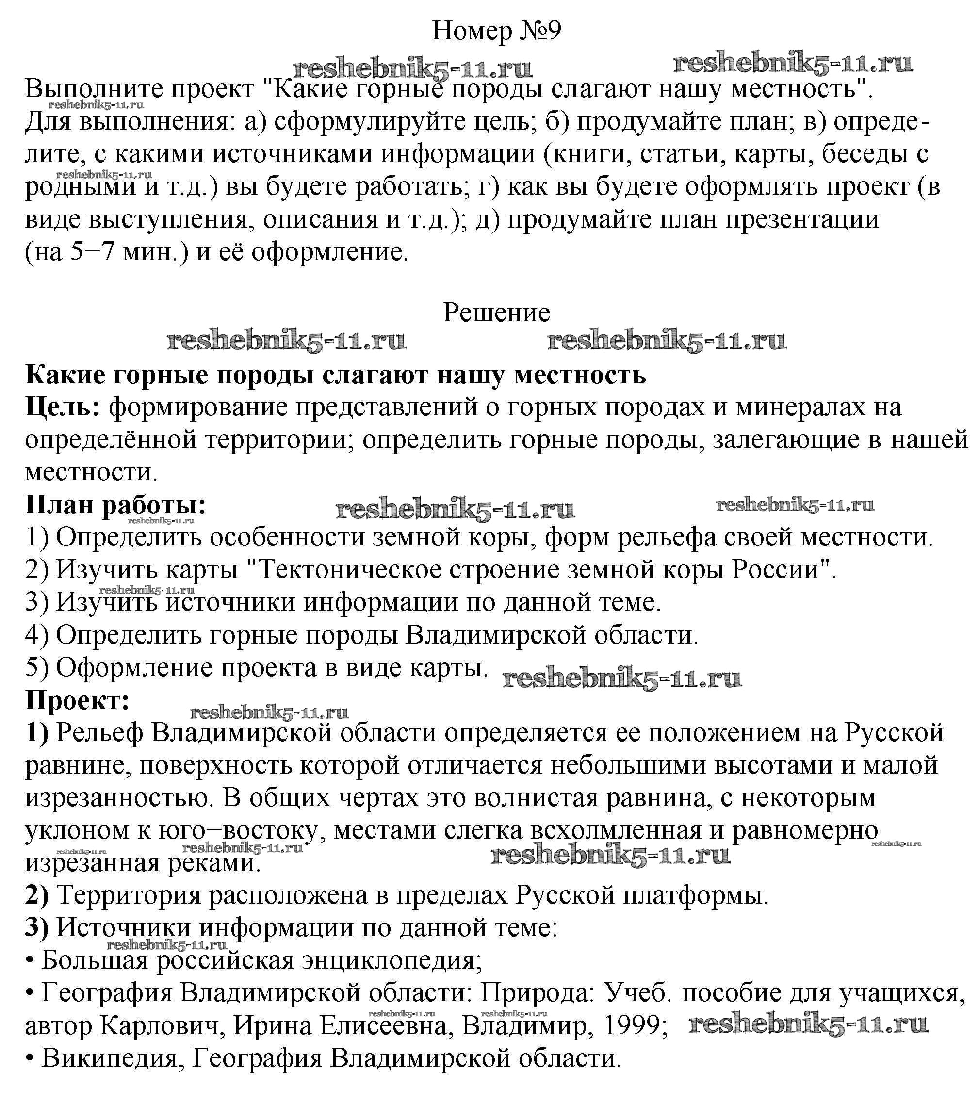 Готовая домашняя работа с ответами по Географии за 5 класс Николина Рабочая тетрадь УМК Экзамен 2022 ФГОС - Тема 19. Горные породы, минералы и полезные ископаемые 9