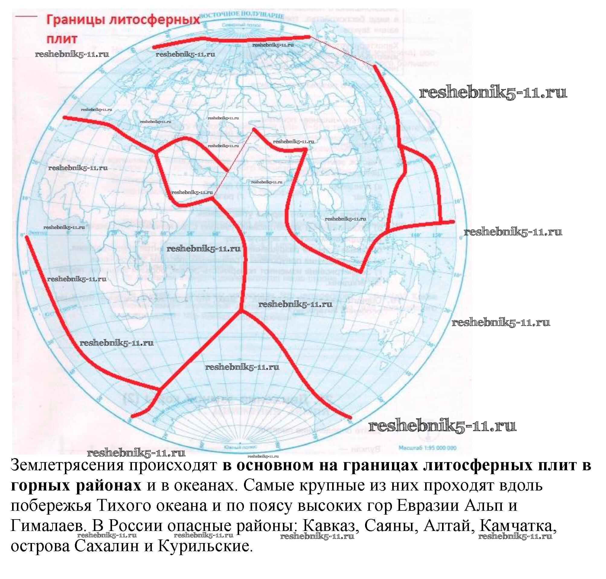 Готовая домашняя работа с ответами по Географии за 5 класс Николина Рабочая тетрадь УМК Экзамен 2022 ФГОС - Тема 20. Движения земной коры (1) 5