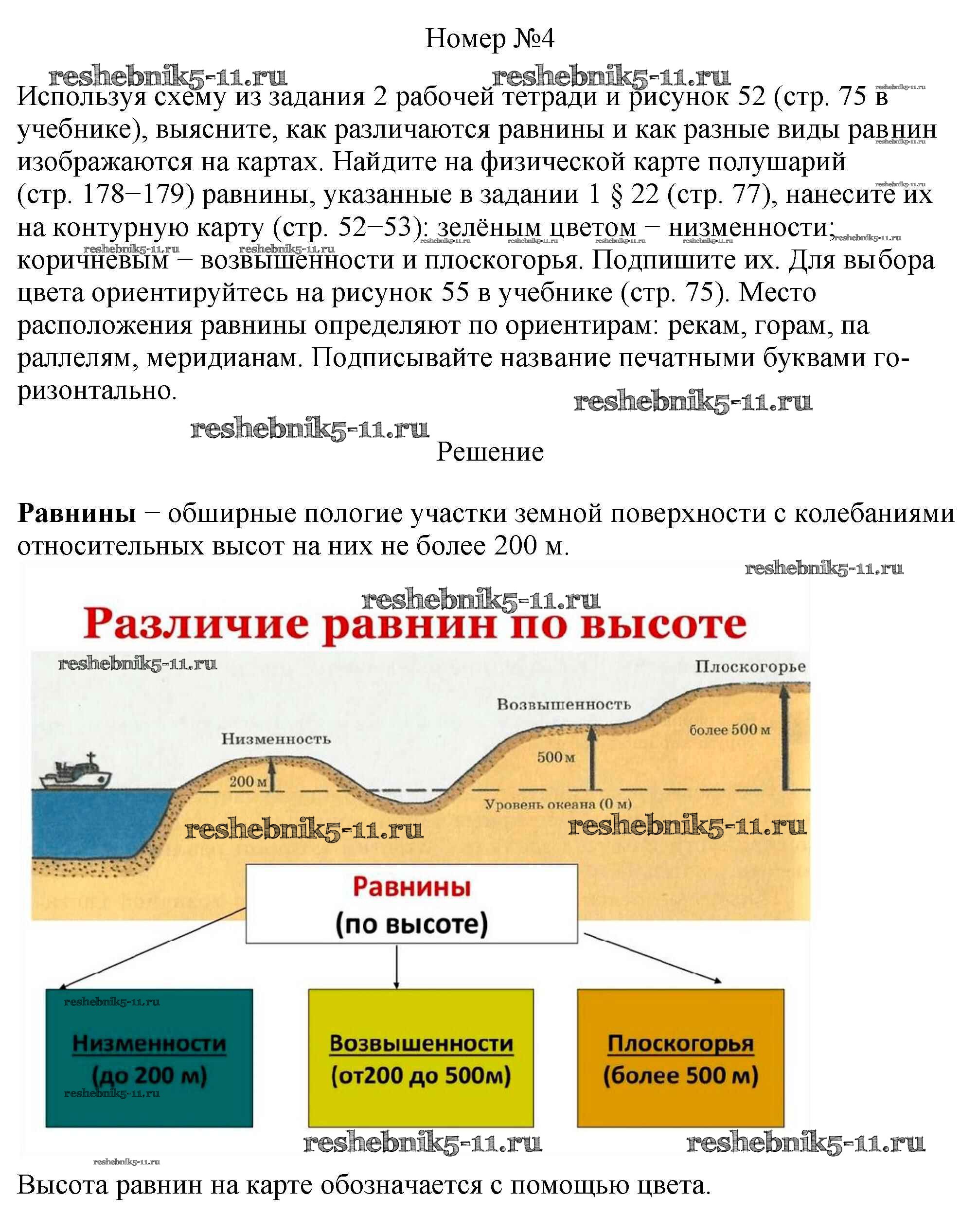 Готовая домашняя работа с ответами по Географии за 5 класс Николина Рабочая тетрадь УМК Экзамен 2022 ФГОС - Тема 22. Рельеф Земли. Равнины 4