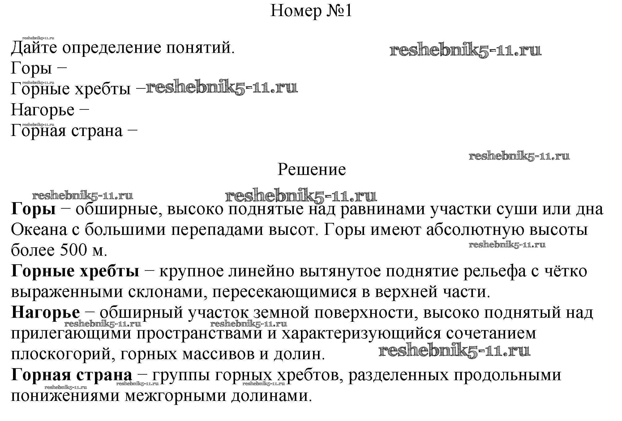 Готовая домашняя работа с ответами по Географии за 5 класс Николина Рабочая тетрадь УМК Экзамен 2022 ФГОС - Тема 23. Рельеф Земли. Горы 1