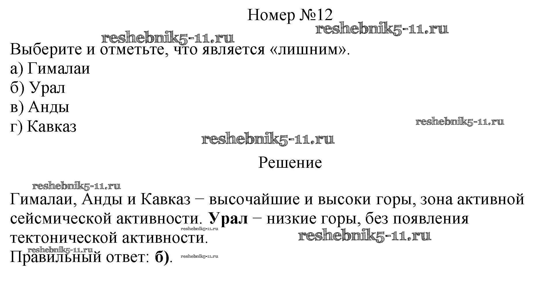 Готовая домашняя работа с ответами по Географии за 5 класс Николина Рабочая тетрадь УМК Экзамен 2022 ФГОС - Тема 23. Рельеф Земли. Горы 12
