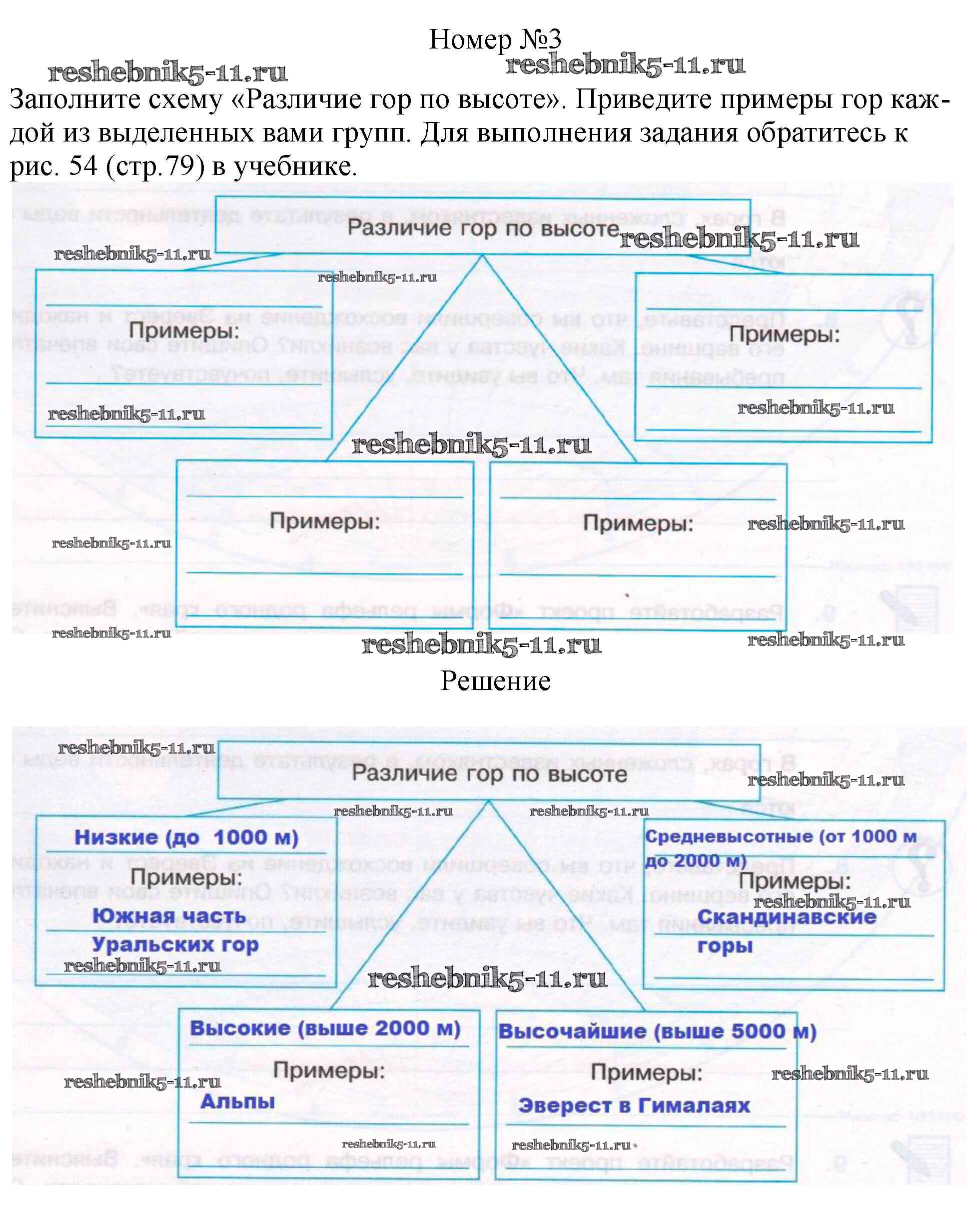 Готовая домашняя работа с ответами по Географии за 5 класс Николина Рабочая тетрадь УМК Экзамен 2022 ФГОС - Тема 23. Рельеф Земли. Горы 3