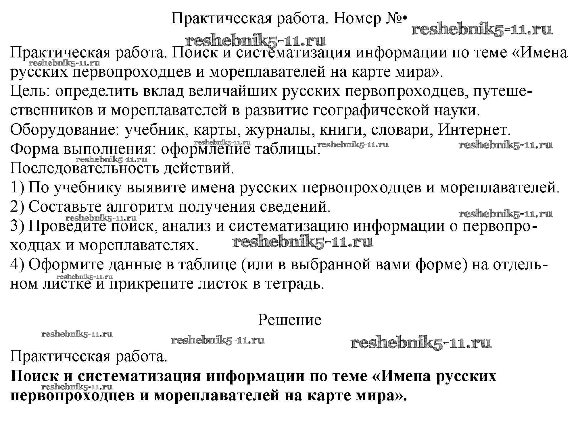 Готовая домашняя работа с ответами по Географии за 5 класс Николина Рабочая тетрадь УМК Экзамен 2022 ФГОС - Практические работы Тема 4