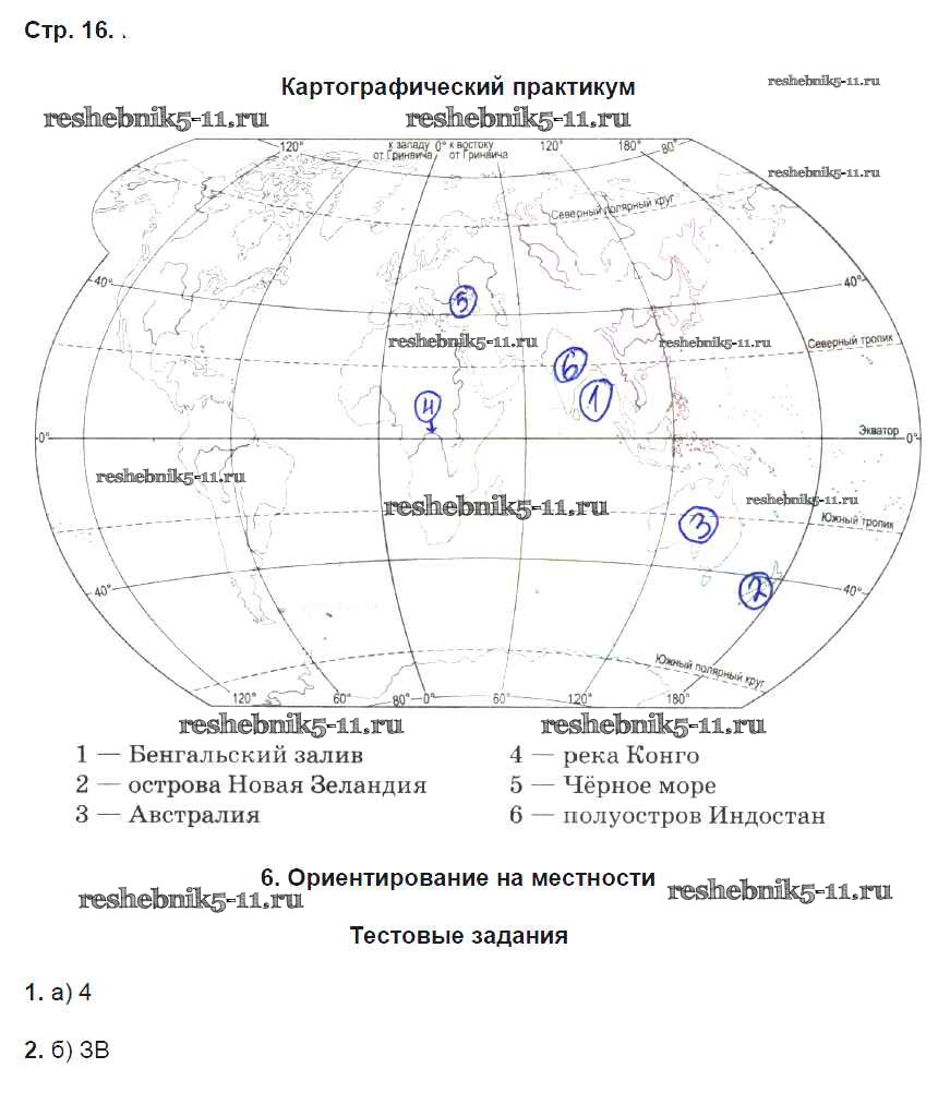 Готовая домашняя работа с ответами по Географии за 5 класс Домогацких Рабочая тетрадь Инновационная школа Русское слово 2013 ФГОС - Страницы 16