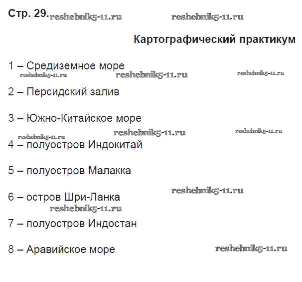 Готовая домашняя работа с ответами по Географии за 5 класс Домогацких Рабочая тетрадь Инновационная школа Русское слово 2013 ФГОС - Страницы 29