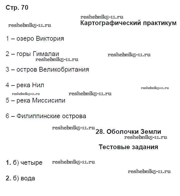 Готовая домашняя работа с ответами по Географии за 5 класс Домогацких Рабочая тетрадь Инновационная школа Русское слово 2013 ФГОС - Страницы 70