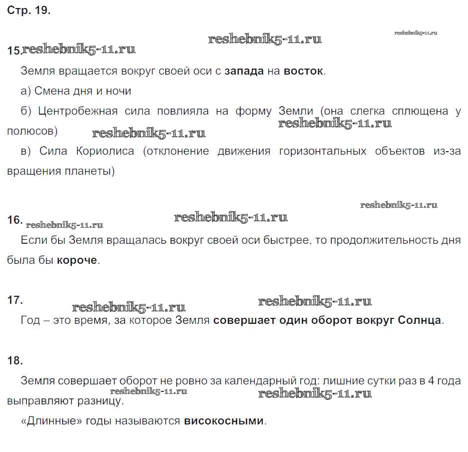 Готовая домашняя работа с ответами по Географии за 5 класс Дронов, Савельева Рабочая тетрадь УМК Дрофа 2016 ФГОС - Страницы 19