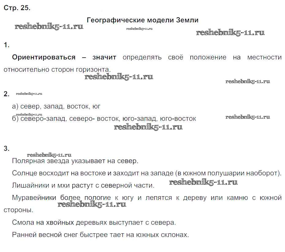 Готовая домашняя работа с ответами по Географии за 5 класс Дронов, Савельева Рабочая тетрадь УМК Дрофа 2016 ФГОС - Страницы 25