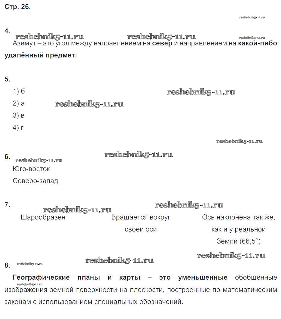 Готовая домашняя работа с ответами по Географии за 5 класс Дронов, Савельева Рабочая тетрадь УМК Дрофа 2016 ФГОС - Страницы 26