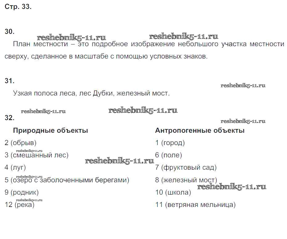 Готовая домашняя работа с ответами по Географии за 5 класс Дронов, Савельева Рабочая тетрадь УМК Дрофа 2016 ФГОС - Страницы 33