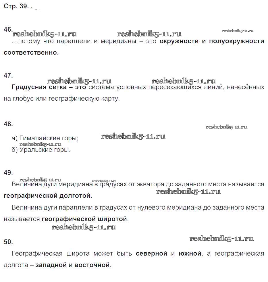 Готовая домашняя работа с ответами по Географии за 5 класс Дронов, Савельева Рабочая тетрадь УМК Дрофа 2016 ФГОС - Страницы 39