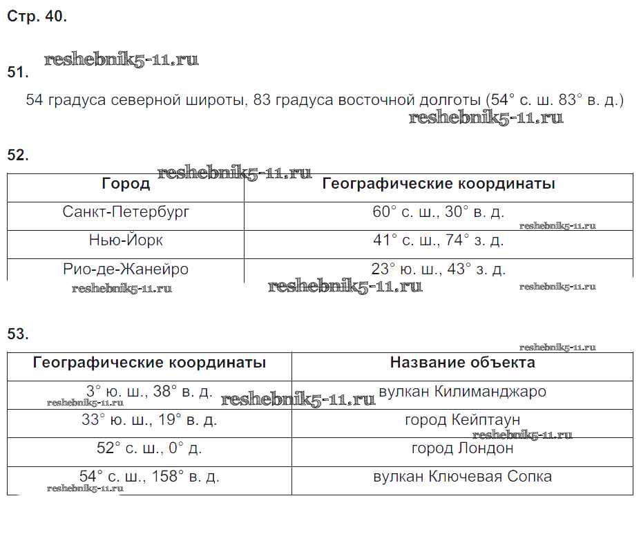 Готовая домашняя работа с ответами по Географии за 5 класс Дронов, Савельева Рабочая тетрадь УМК Дрофа 2016 ФГОС - Страницы 40