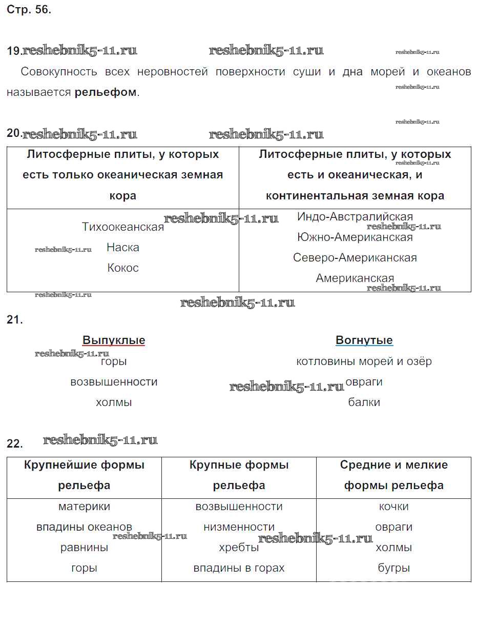 Готовая домашняя работа с ответами по Географии за 5 класс Дронов, Савельева Рабочая тетрадь УМК Дрофа 2016 ФГОС - Страницы 56